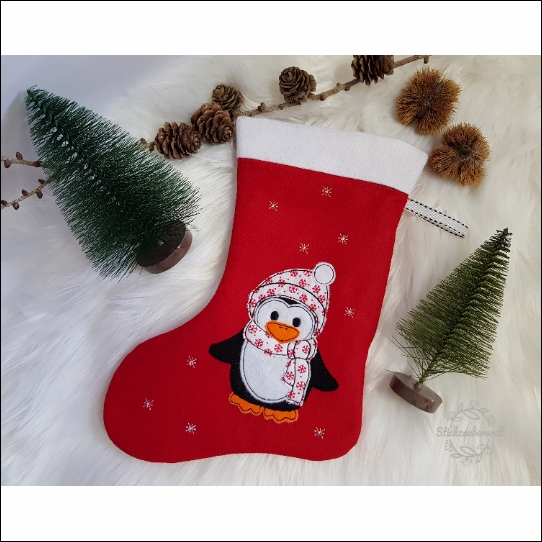 „Stickdatei für Nikolausstiefel Pinguin /ITH in 3 Größen 16×26/ 20×28/ 20×30 plus Blankodateien “
